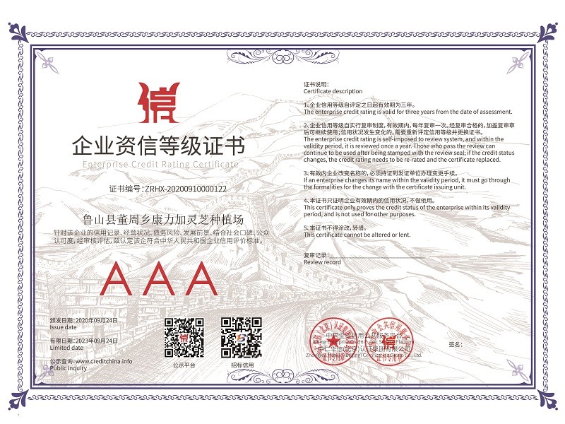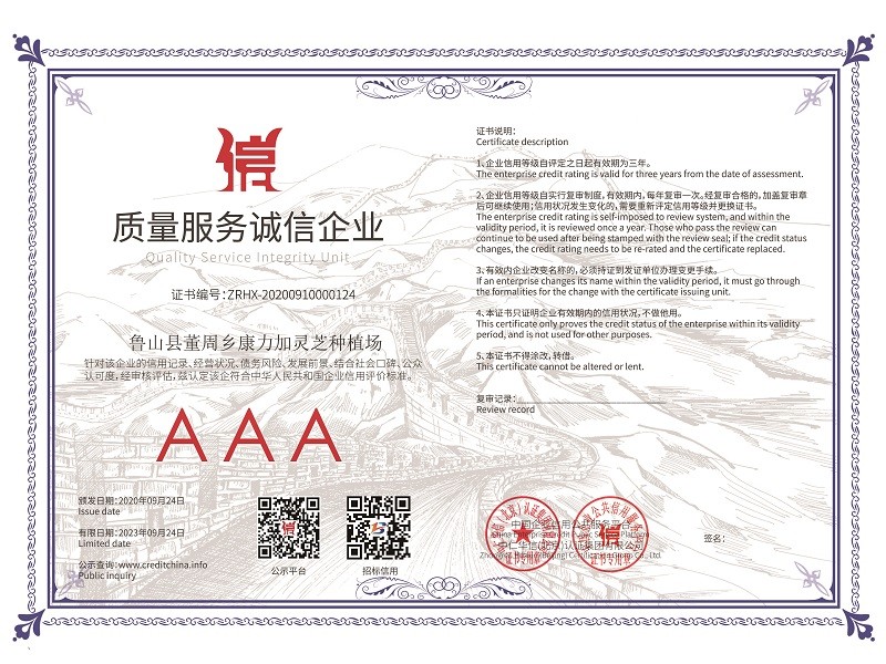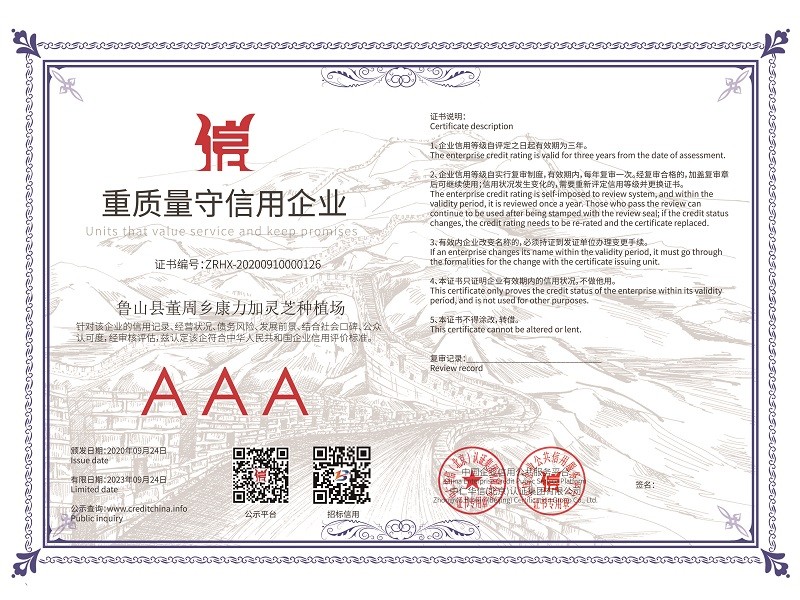 2020年國家又精準(zhǔn)扶貧建了28個標(biāo)準(zhǔn)種植大棚,又自建了60個大棚,靈芝孢子粉的產(chǎn)量有望翻倍增加,產(chǎn)量和產(chǎn)值的雙倍增加,相信2023年康力加靈芝種植場會錦上添花,更上一層樓。康力加的經(jīng)營理念“質(zhì)量第一、信譽至上、客戶最高”愿我們的合作共贏,給人們一個健康體魄!